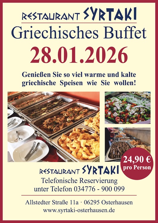 Wir würden uns freuen Sie recht bald in unserem Restaurant Syrtaki in Osterhausen begrüßen zu dürfen.